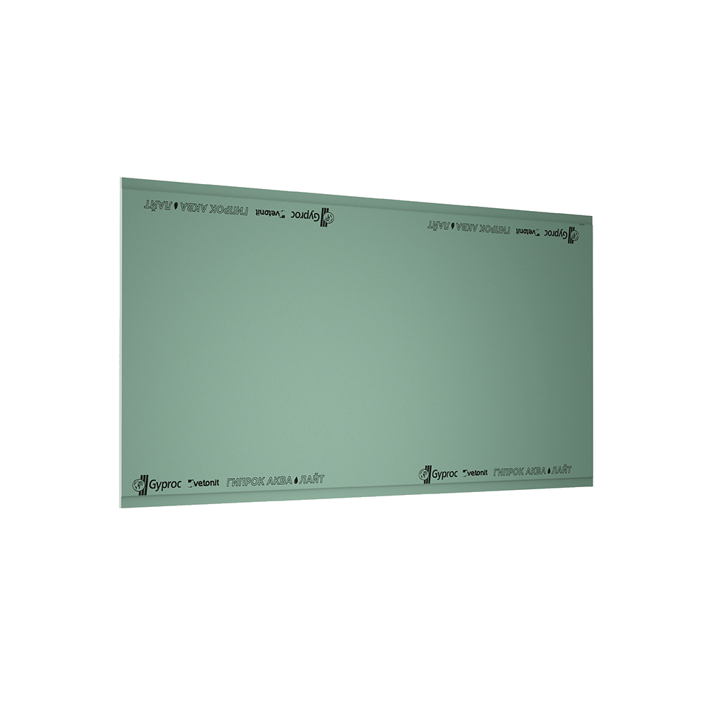 Гипсокартон влагостойкий Ветонит (Гипрок) Аква Лайт (ГСП-Н3) - облегчённая гипсовая строительная плита (ГСП), изготовленная с использованием антигрибковых добавок.