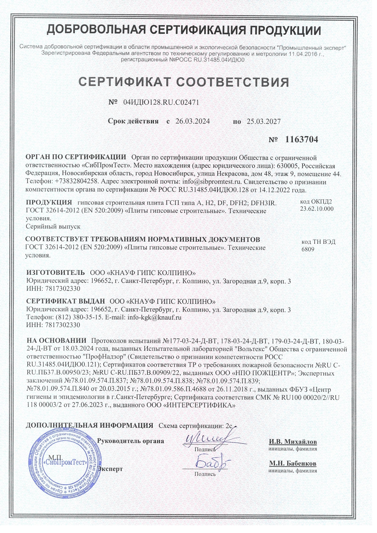Выпускается в соответствии с ГОСТ 32614-2012 (EN 520:2009).