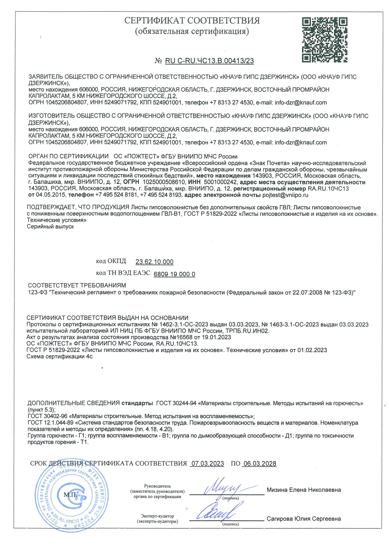 Качество продукции подтверждается: ГОСТ, сертификатом соответствия, сертификатом пожарной безопасности и Гигиеническим заключением на применение в жилищно-гражданском строительстве.