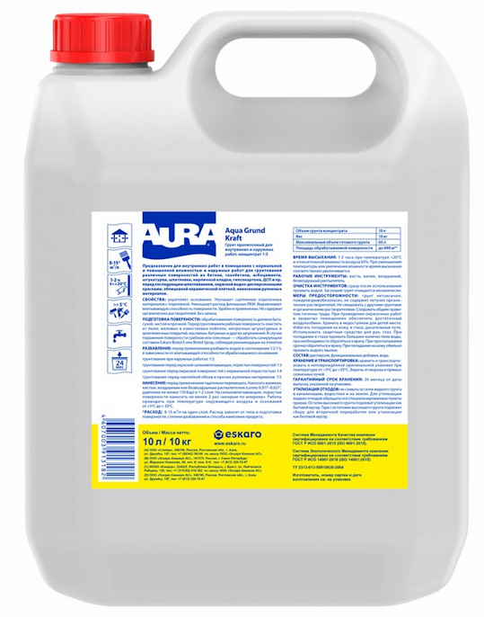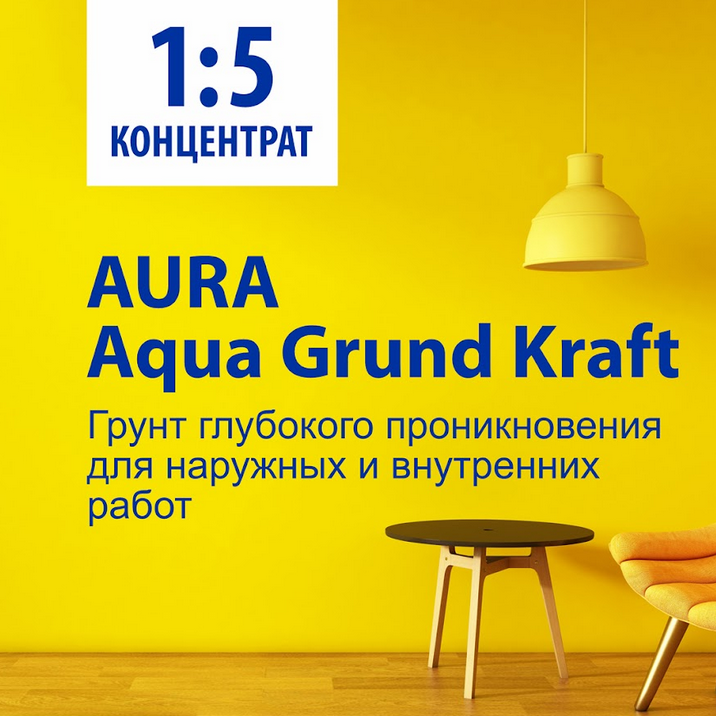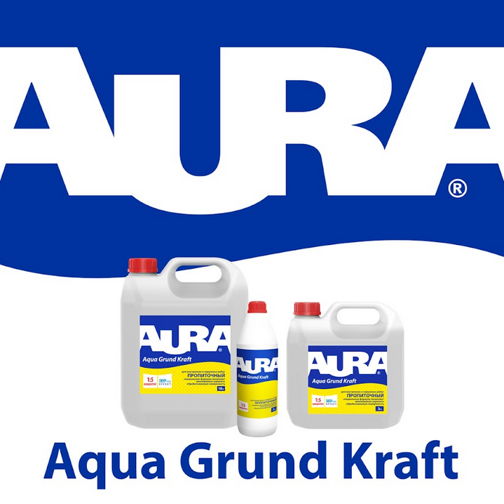 Искал грунт подешевле для обеспыливания стен, купил Aura Kraft, разбавил водой 1:5. С одной 10-литровой канистры концентрата получилось 60 литров готового грунта за совершенно смешные деньги. Свою задачу грунт выполнил.