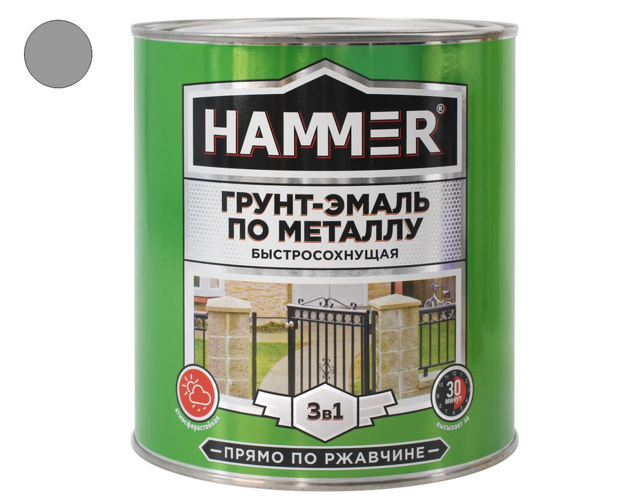 Грунт-Эмаль по металлу Хаммер, предназначена для защиты и создания декоративного покрытия на стальных и чугунных поверхностях с остатками оскалины и плотно державшейся ржавчины, подвергающихся воздействию атмосферы, солей и других химических реагентов.