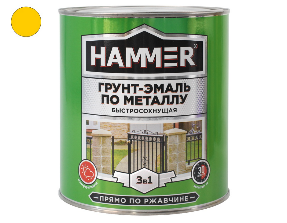 Грунт-эмаль по металлу 3 в 1 HAMMER желтая матовая 2,7кг