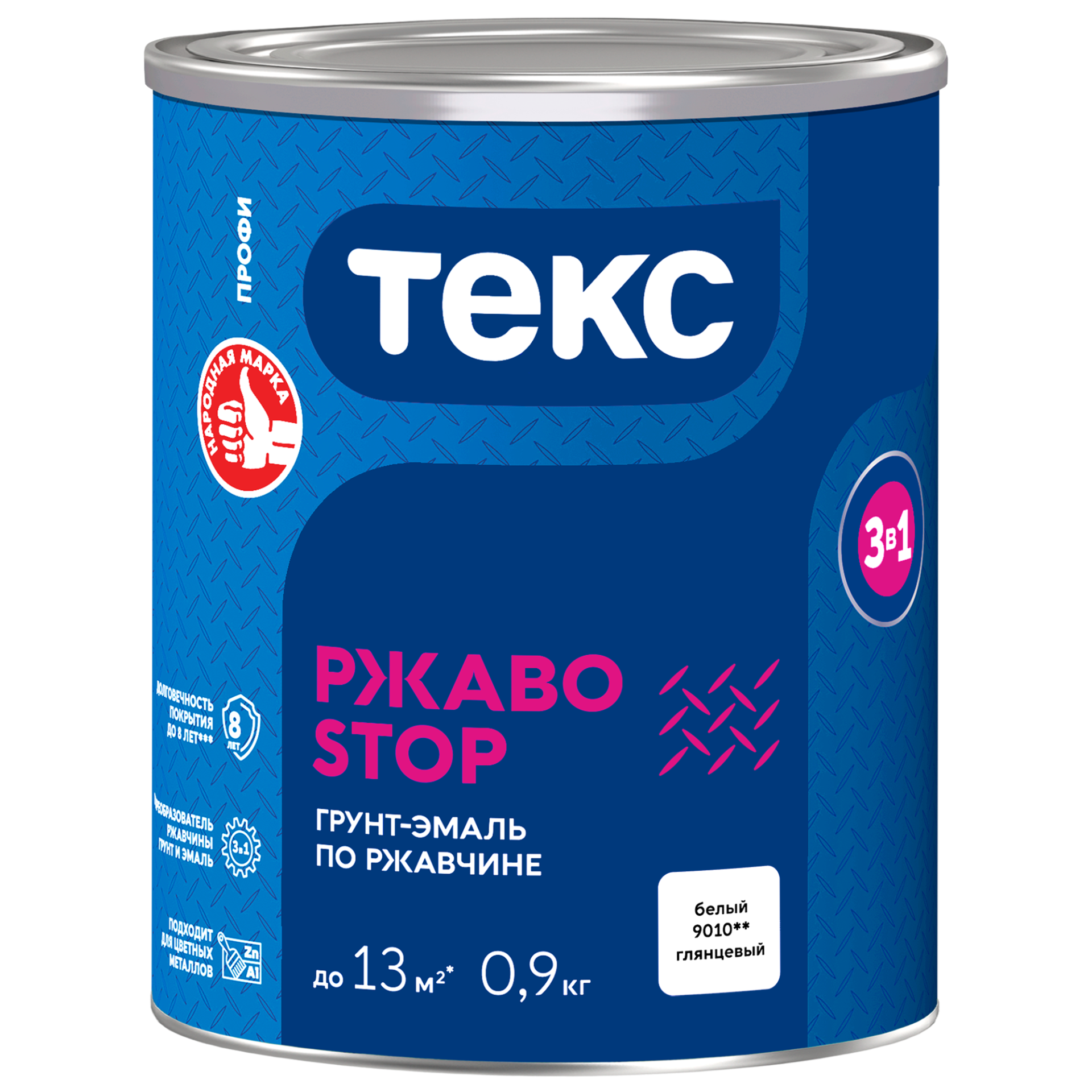 Грунт-эмаль по ржавчине Текс РжавоStop 3 в 1 белая глянцевая 0,9кг