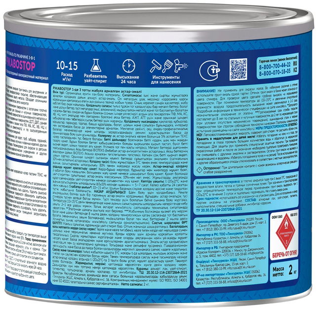 Хранение: допускается хранение при отрицательной температуре, в этом случае перед применением необходимо выдержать банку при температуре от + 20 С до +/-2 С в течении 24 часов. После вскрытия эмаль можно хранить в плотно закрытой таре в течение срока годности.