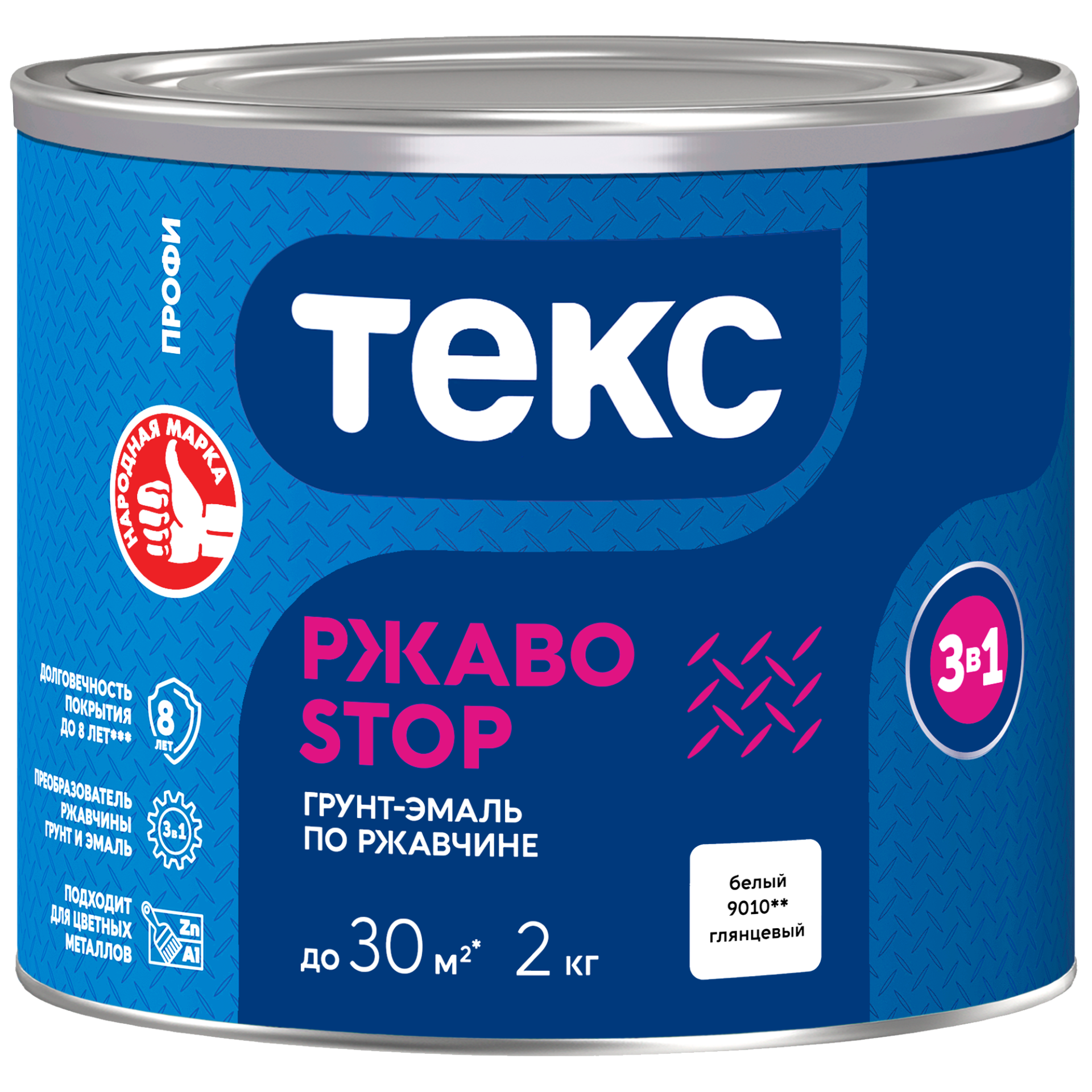 Грунт-эмаль по ржавчине Текс РжавоStop 3 в 1 белая глянцевая 2кг