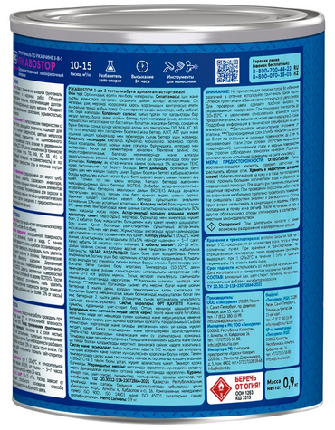 Хранение: допускается хранение при отрицательной температуре, в этом случае перед применением необходимо выдержать банку при температуре от + 20 С до +/-2 С в течении 24 часов. После вскрытия эмаль можно хранить в плотно закрытой таре в течение срока годности.