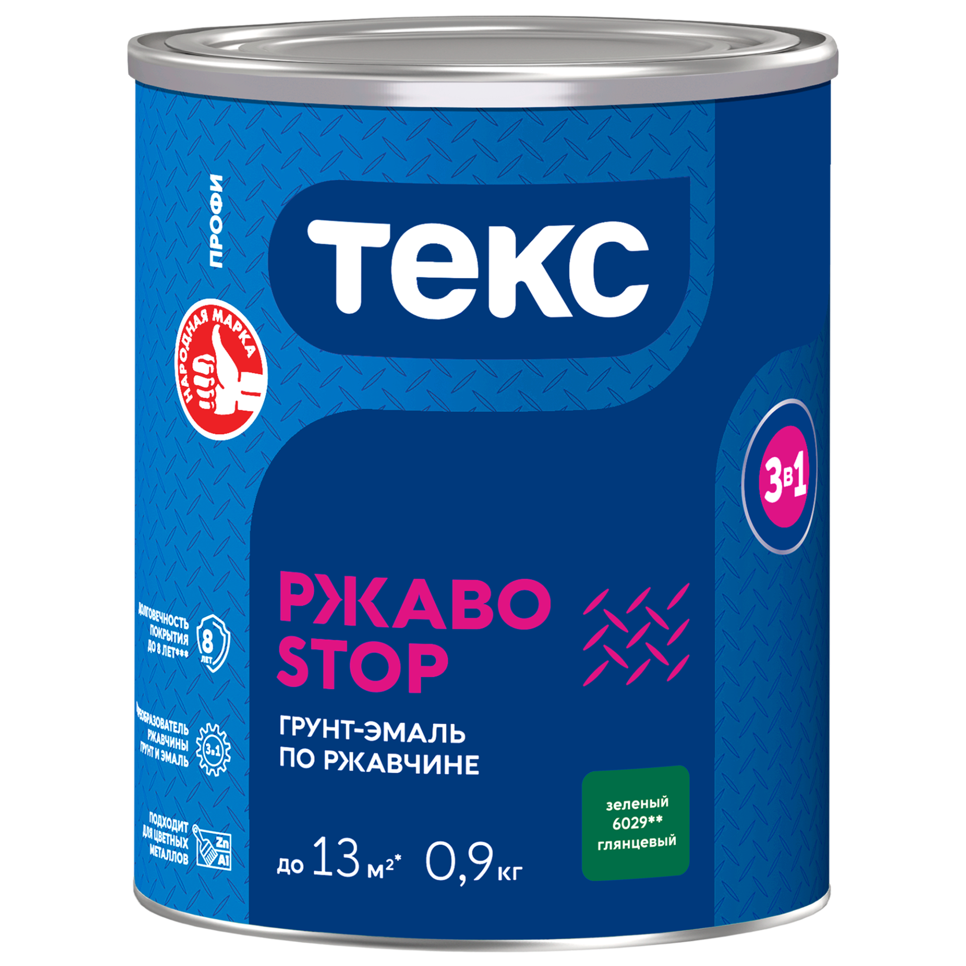 Грунт-эмаль по ржавчине Текс РжавоStop 3 в 1 зеленая глянцевая 0,9кг