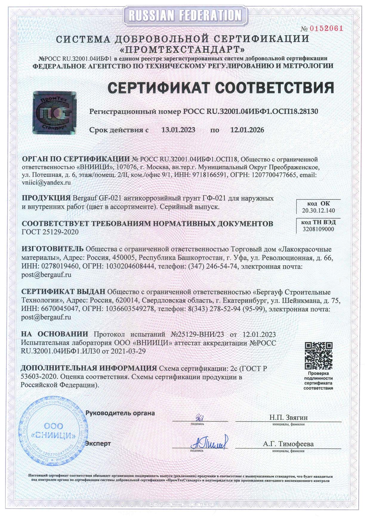 Грунтовка Бергауф ГФ-021- алкидный грунт, который предназначен для металлических и деревянных поверхностей, под покрытие различными эмалями.