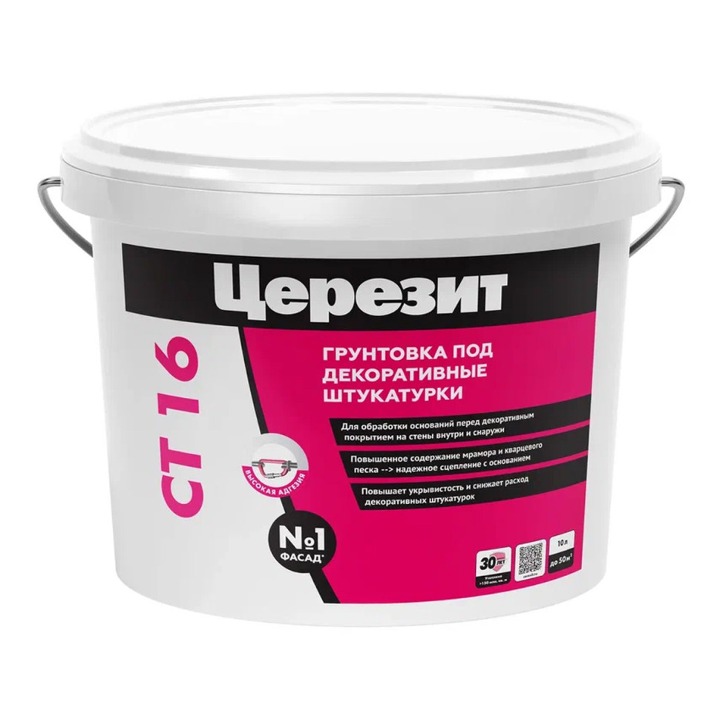 Ceresit CT 16 – Водно-дисперсионная грунтовка для подготовки оснований под нанесение декоративных штукатурок. Грунтовка предотвращает просвечивание цвета основания через декоративное штукатурное покрытие. В состав грунтовки Ceresit СТ 16 входит водная дисперсия акриловых сополимеров, кварцевый песок.