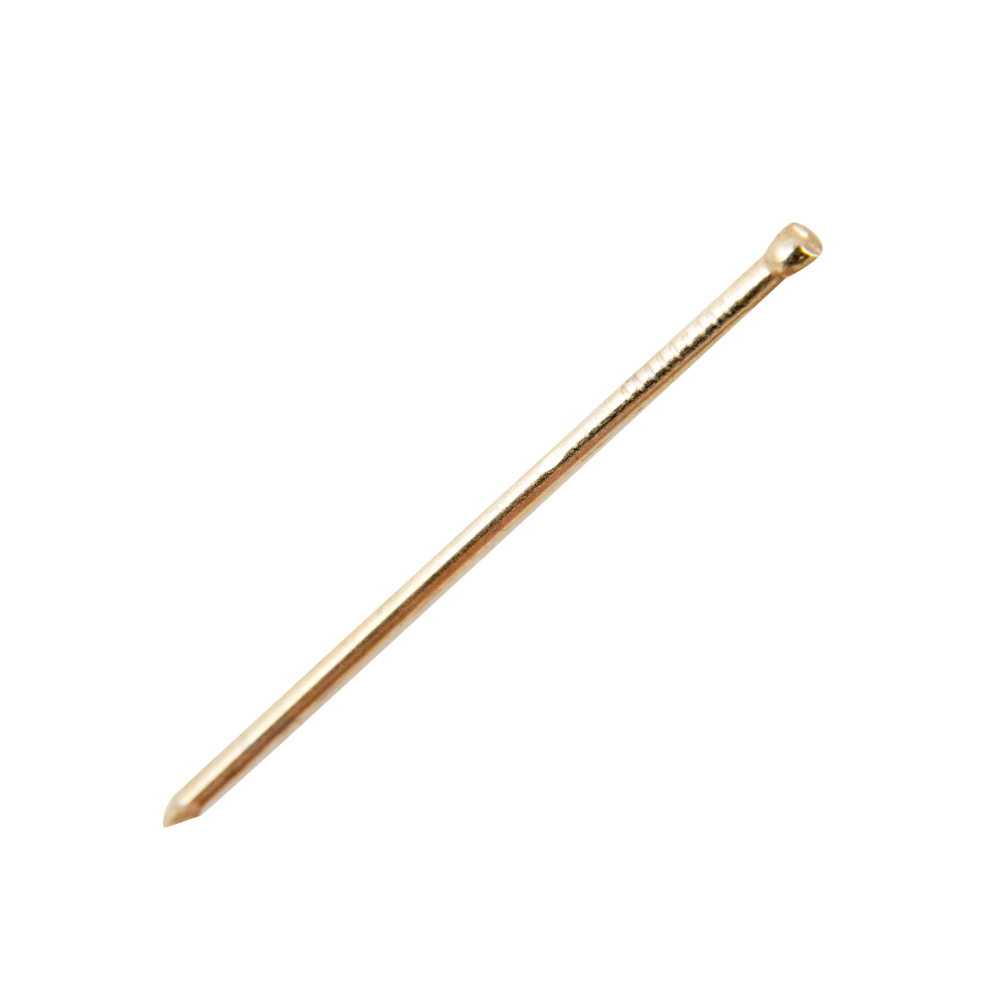 Гвозди финишные латунированные применяются для крепления вагонки, дверных наличников, плинтусов, галтелей, тонких реек и других декоративных пиломатериалов к деревянному основанию. Благодаря небольшому диаметру стержня в 1,4мм гвоздь с легкостью входит в деревянное изделие и не дает трещин при вбивании. А при незначительном превышении диаметра шляпки гвоздя к диаметру стержня, крепеж сливается с поверхностью отделочного материала после вбивания.