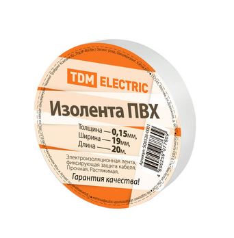 Изолента ПВХ 19мм х 20мм белая применяется в качестве изоляционного материала при выполнении электротехнических работ.