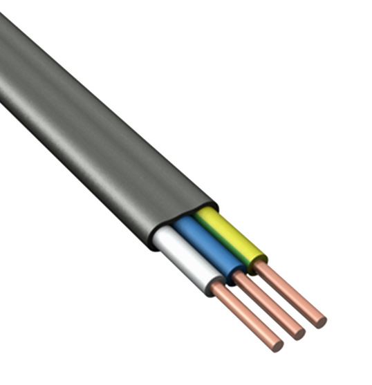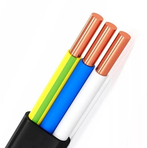 Токопроводящие жилы - круглые , из меди. Изоляция - пластиковая (из ПВХ). Жилы кабеля имеют специальную расцветку. Нулевые жилы - голубого цвета. Жилы заземления - желто-зеленые. Оболочка кабеля изготовлена из ПВХ пониженной горючести и пониженного дымовыделения.