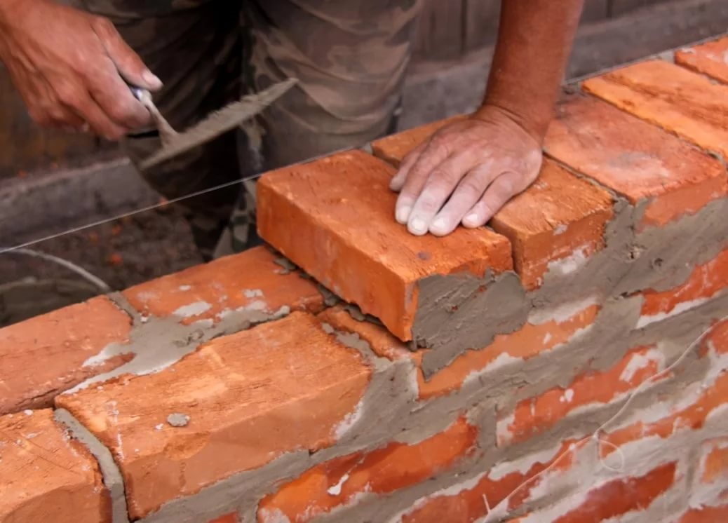 Кладка кирпича выполняется с соблюдением технологии — от установки "маячковых" кирпичей до перевязок для максимальной прочности конструкции. Для стены толщиной 0,5 кирпича понадобится 51 шт., для 1 кирпича — 102 шт., для 1,5 кирпича — 153 шт. (с учетом швов 10 мм). На одном поддоне — 400 кирпичей.