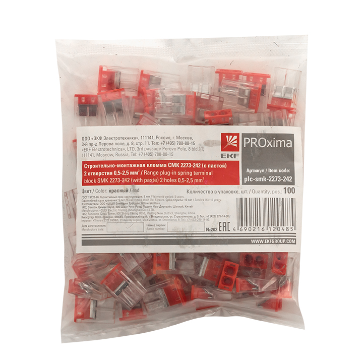 Клемма с пастой 2 отверстия 0,5-2.5мм2 СМК 2273-242 (100 шт.) EKF
