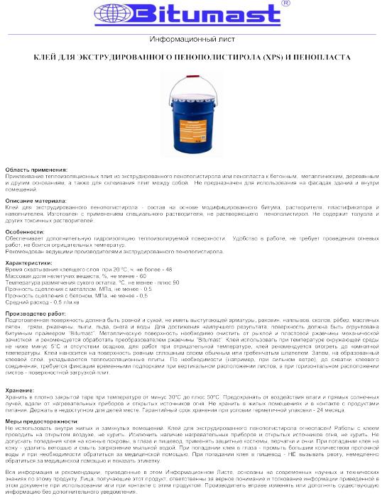 Клей Битумаст для экструдированного пенополистирола 21,5л