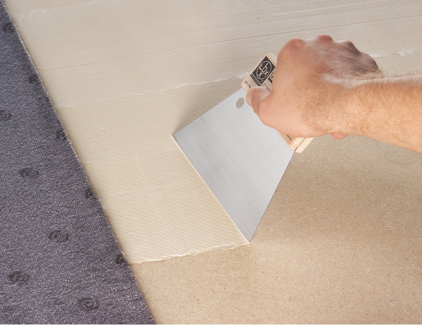 Подходит для приклеивания рулонных ПВХ покрытий, в том числе на вспененной основе, ПВХ и кварцвиниловых плиток, пробковых плиток на ПВХ основе и ковровых плиток на различных основах, практически всех видов линолеума, ковролина и иглопрошивных покрытий к впитывающим влагу поверхностям в сухих и влажных помещениях.