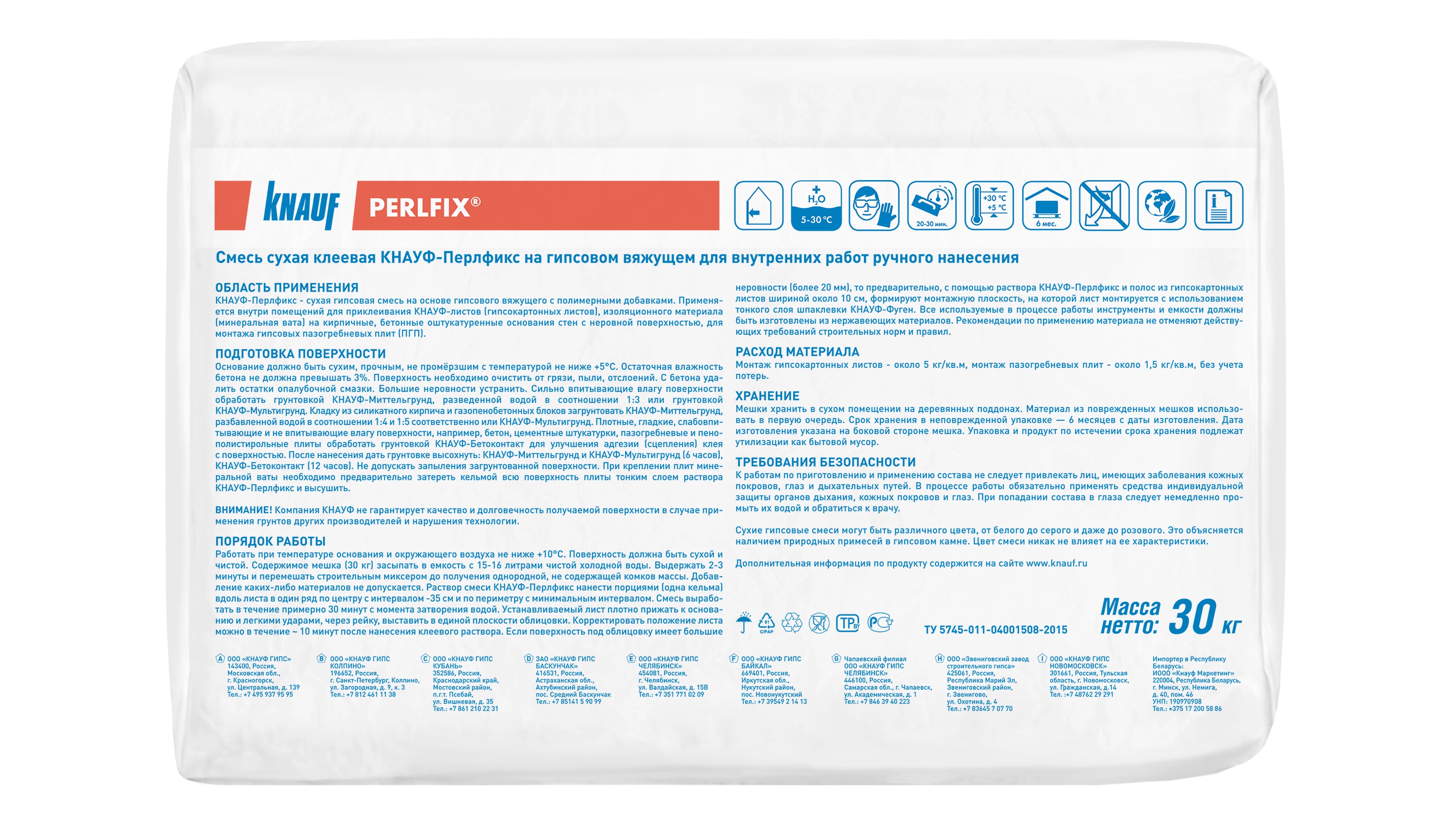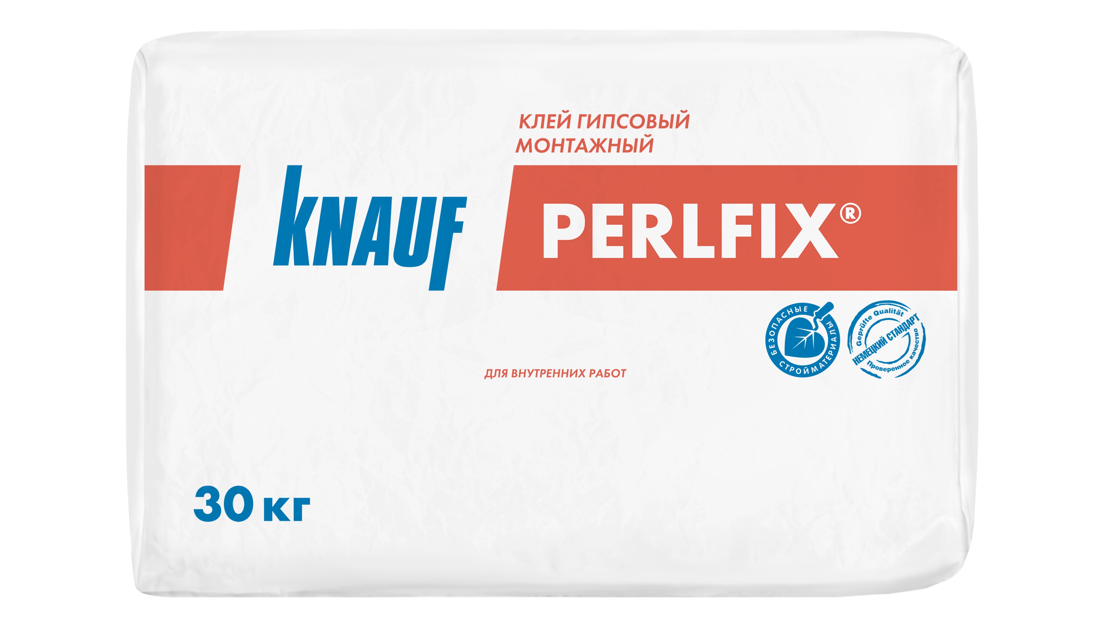 Клей КНАУФ-Перлфикс гипсовый для гипсокартона 30кг - сухая монтажная смесь на основе гипсового вяжущего со специальными добавками.