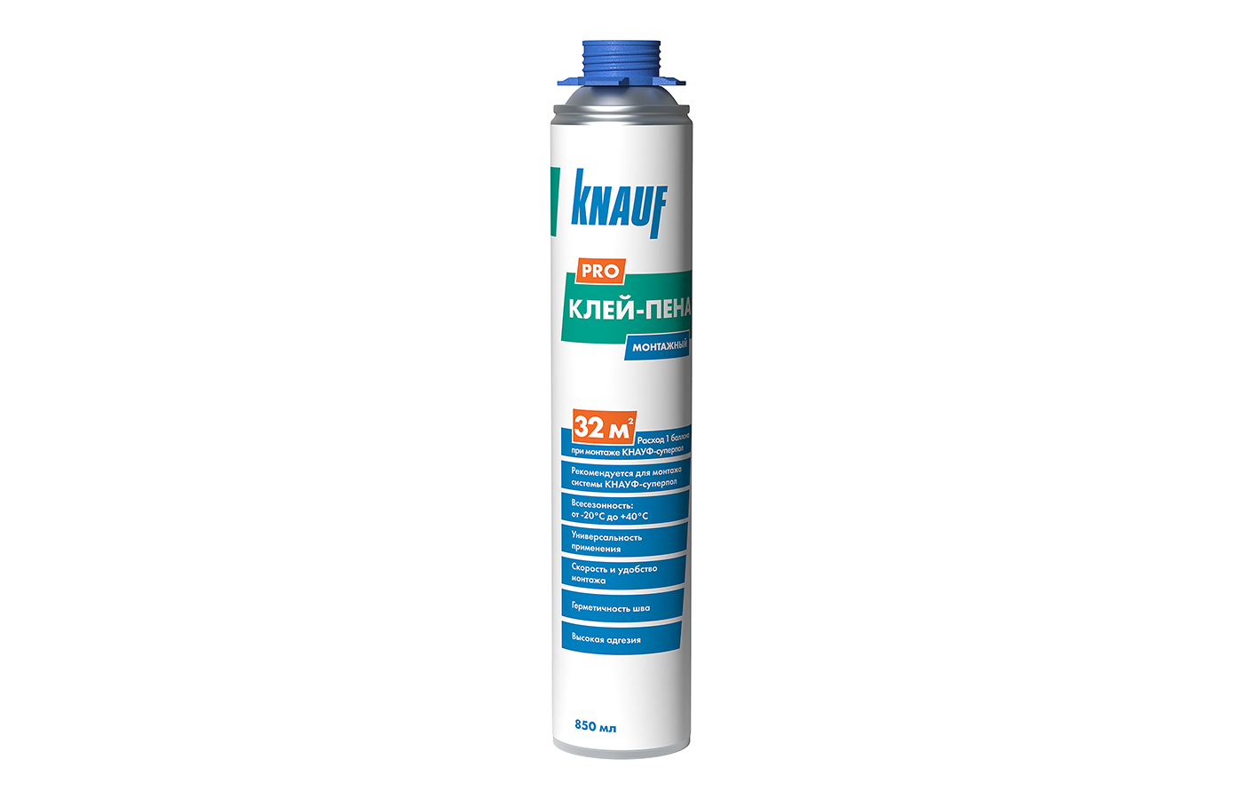 Клей-пена монтажная КНАУФ - универсальный, всесезонный, однокомпонентный полиуретановый клей для бытового и профессионального использования.