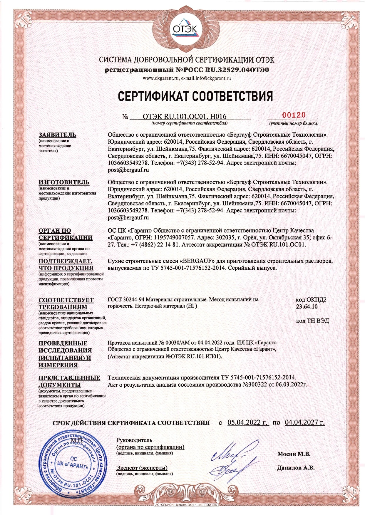 | Морозостойкость: | F75 |
