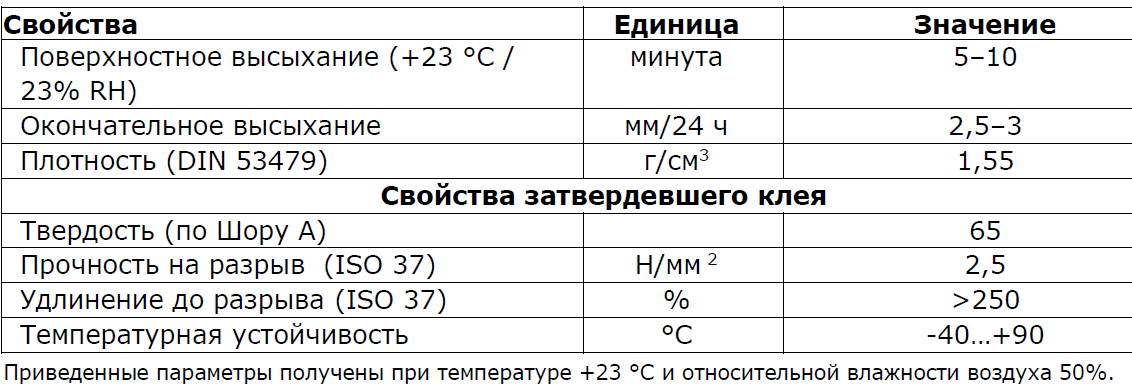 - Клеевая и уплотнительная масса обладает хорошими антивибрационными и шумопоглощающими свойствами.