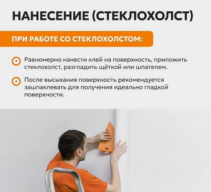 Клей обладает оптимальной консистенцией для легкого и равномерного нанесения. После высыхания он образует эластичный и абсолютно прозрачный клеевой шов, который не проступает через светлые обои и совместим с красками.