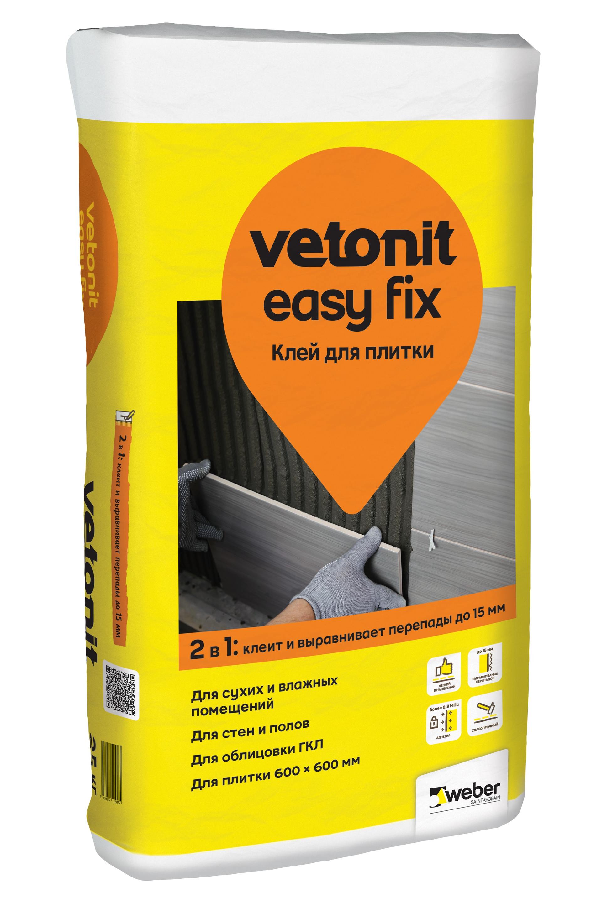 Ветонит Изи Фикс - клеящий раствор на цементной основе для укладки настенной и напольной плитки. Не использовать для укладки плитки на основы, подвергающиеся термическому воздействию как, например, на полы с подогревом.