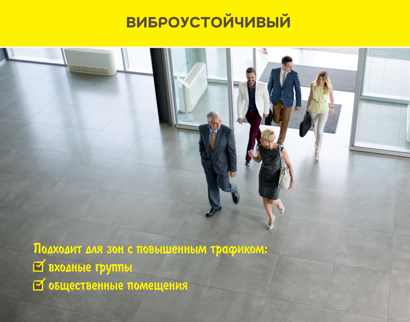Высокая адгезия и эластичность позволяют применять на промерзающих (фасады, лестницы,открытые патио) или нагревающихся основаниях(любая система "теплый пол"), в местах высокой проходимости.