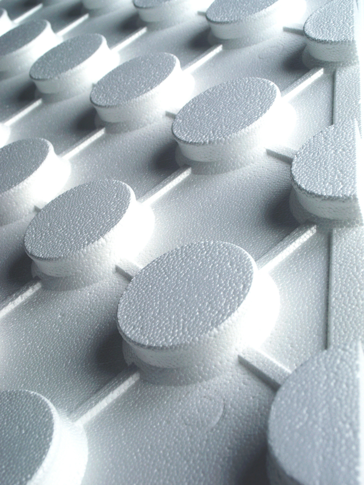 Очень интересное решение - теплоизоляция и "каркас" для укладки труб, 2 в 1. Уменьшает теплопотери, соответственно увеличивает эффективность теплого пола. Скорость монтажа намного выше.
