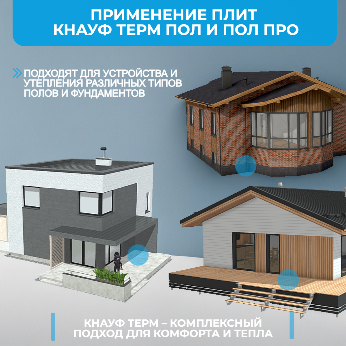 - Утепление полов по грунту, плавающих стяжек, полов с подогревом.