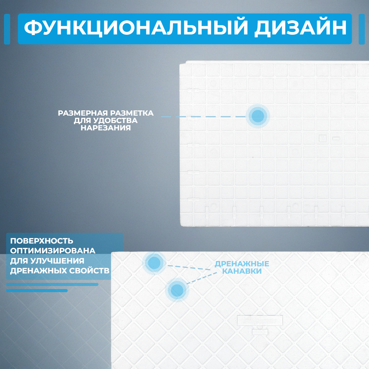 - Надёжность в экстремальных условиях. Материал сохраняет целостность и теплоизолирующие свойства при постоянном контакте с влажным грунтом, обеспечивая защиту фундамента на десятилетия.