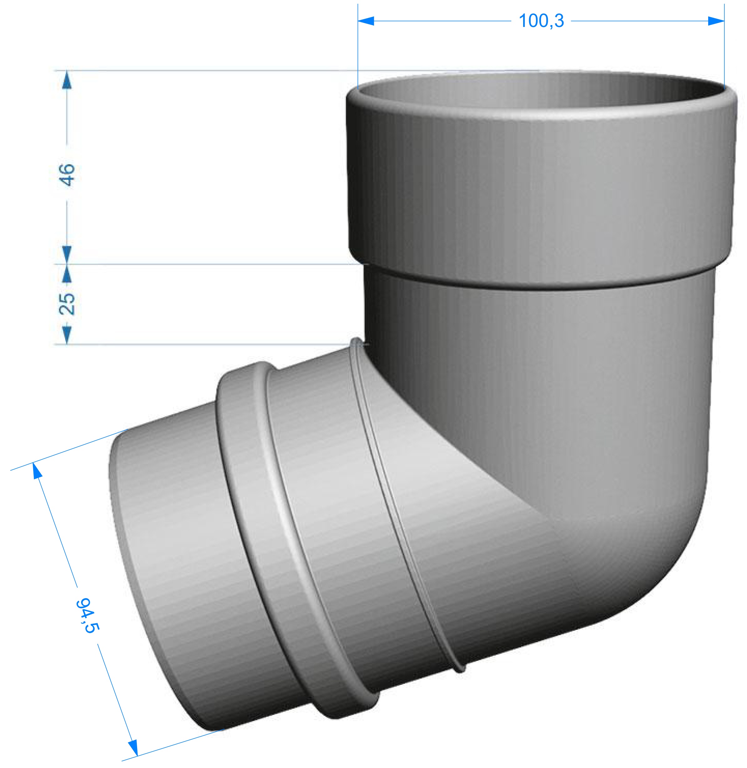Колено трубы предназначено для перехода от воронки желоба к водосточной трубе и для обхода архитектурных фасадов под углом 72 градуса.