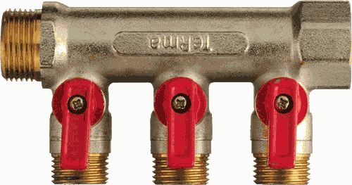 Коллектор с шаровыми кранами 3 выхода х 3/4" х 1/2" НР предназначен для распределения потока транспортируемой среды по потребителям (отдельный прибор или группа, контур или петля "теплого пола", отдельные части/ветви системы). Обеспечивает равное давление для всех потребителей и исключает их влияние друг на друга.
