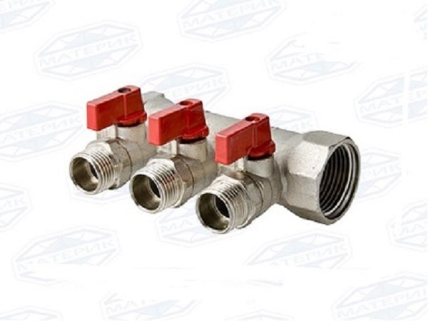Коллектор с шаровыми кранами ВР-НР 3/4 х 3 выхода х НР 1/2