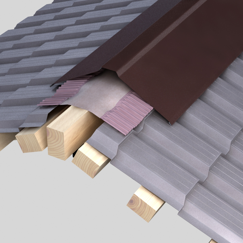 Плоский конек для металлочерепицы – это кровельный доборный элемент, который закрывает стык листов металлочерепицы или профнастила на коньке крыши.