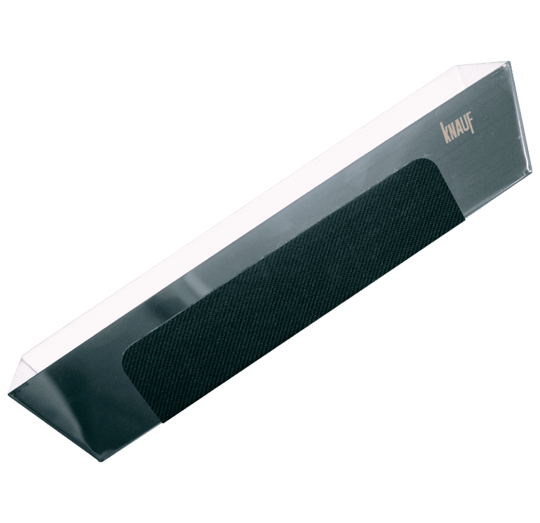 - Обеспечиваются все условия для безопасной и комфортной работы. Короб KNAUF удобно держать в одной руке благодаря его форме, размеру и прорезиненной подложке.