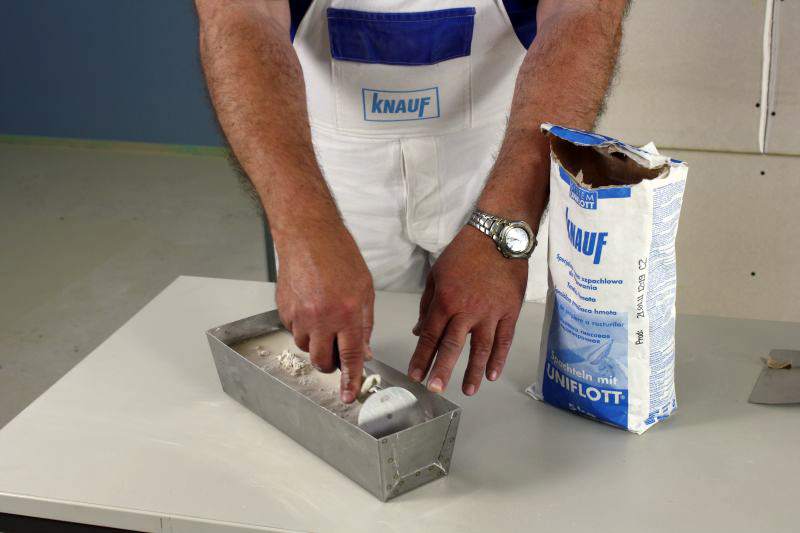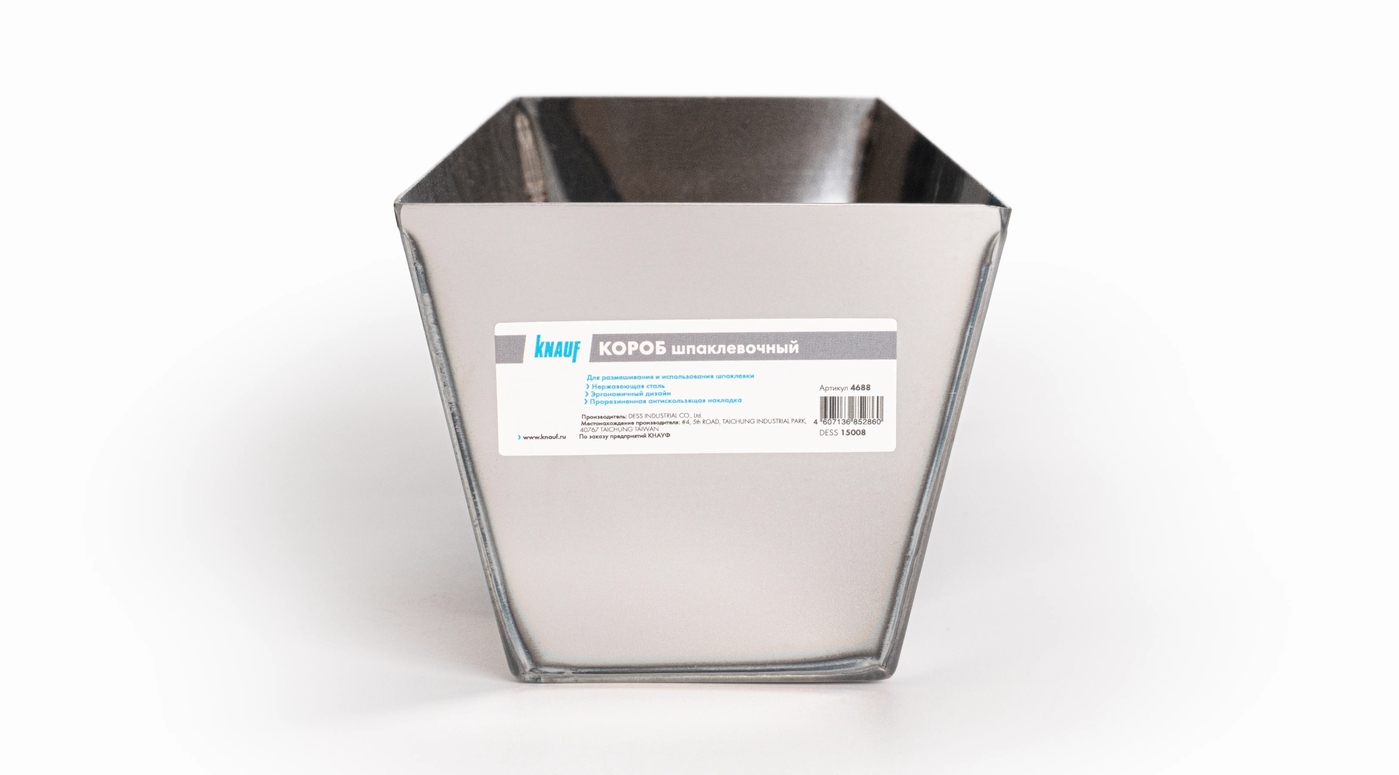 Короб шпаклевочный КНАУФ - ёмкость в форме ванночки, изготовлен из нержавеющей стали с прорезиненной подложкой.