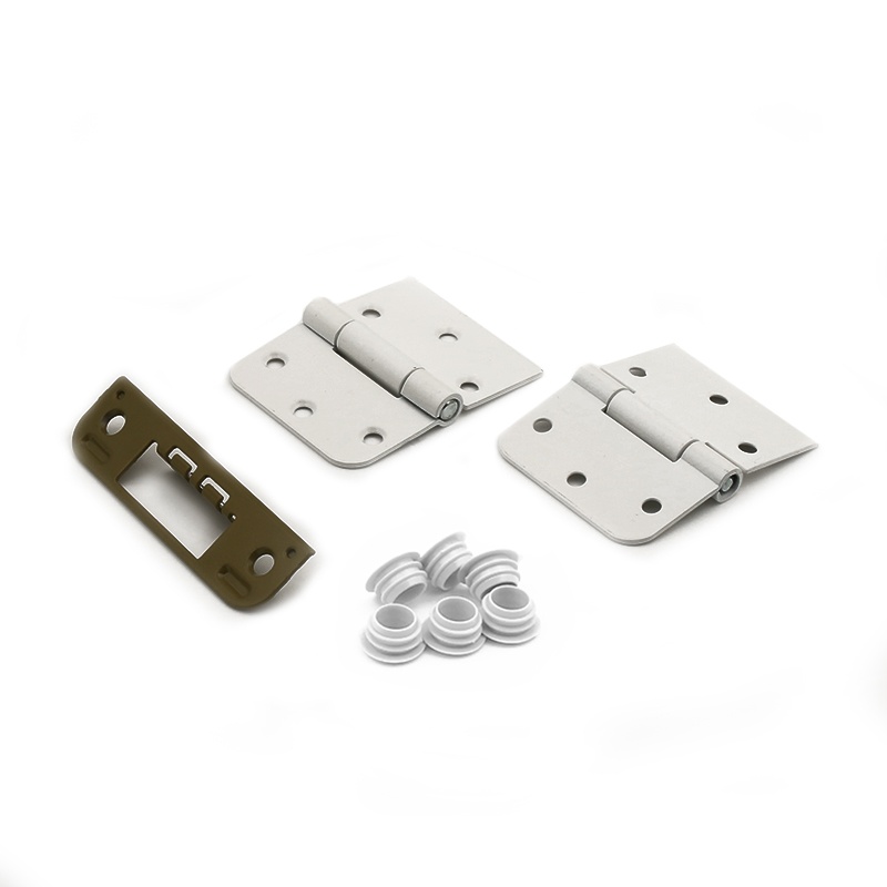 без порога, 2 стойки, 1 верхняя перекладина длиной 937мм, 2 универсальные петли, ответная планка замка и заглушки для крепёжных отверстий.