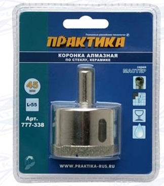 Коронка алмазная по стеклу и керамике Практика 45 мм