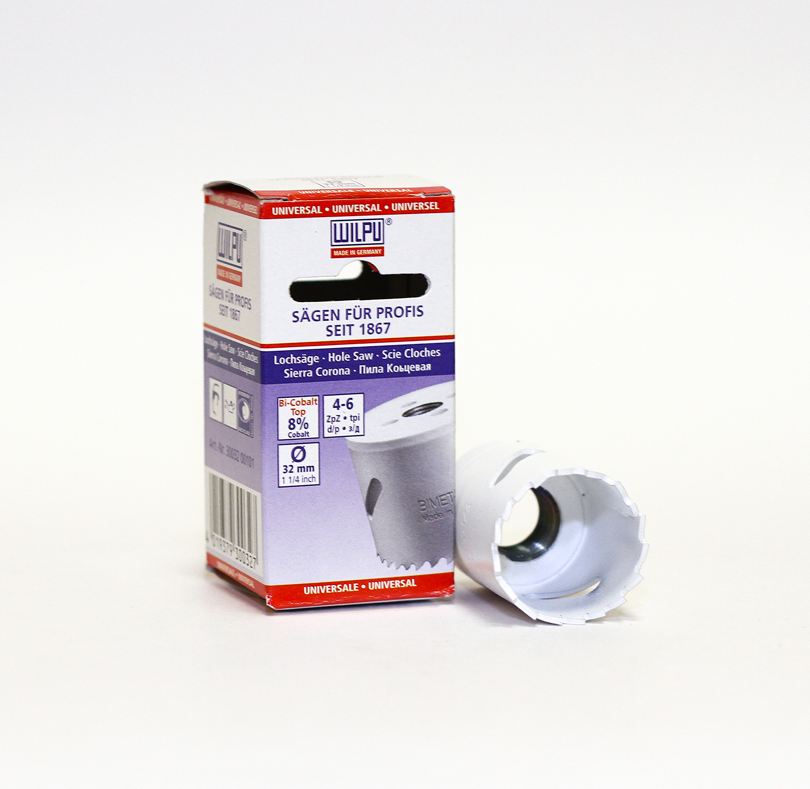 Коронка биметалл универсальная Wilpu Профи 32 мм крупный зуб