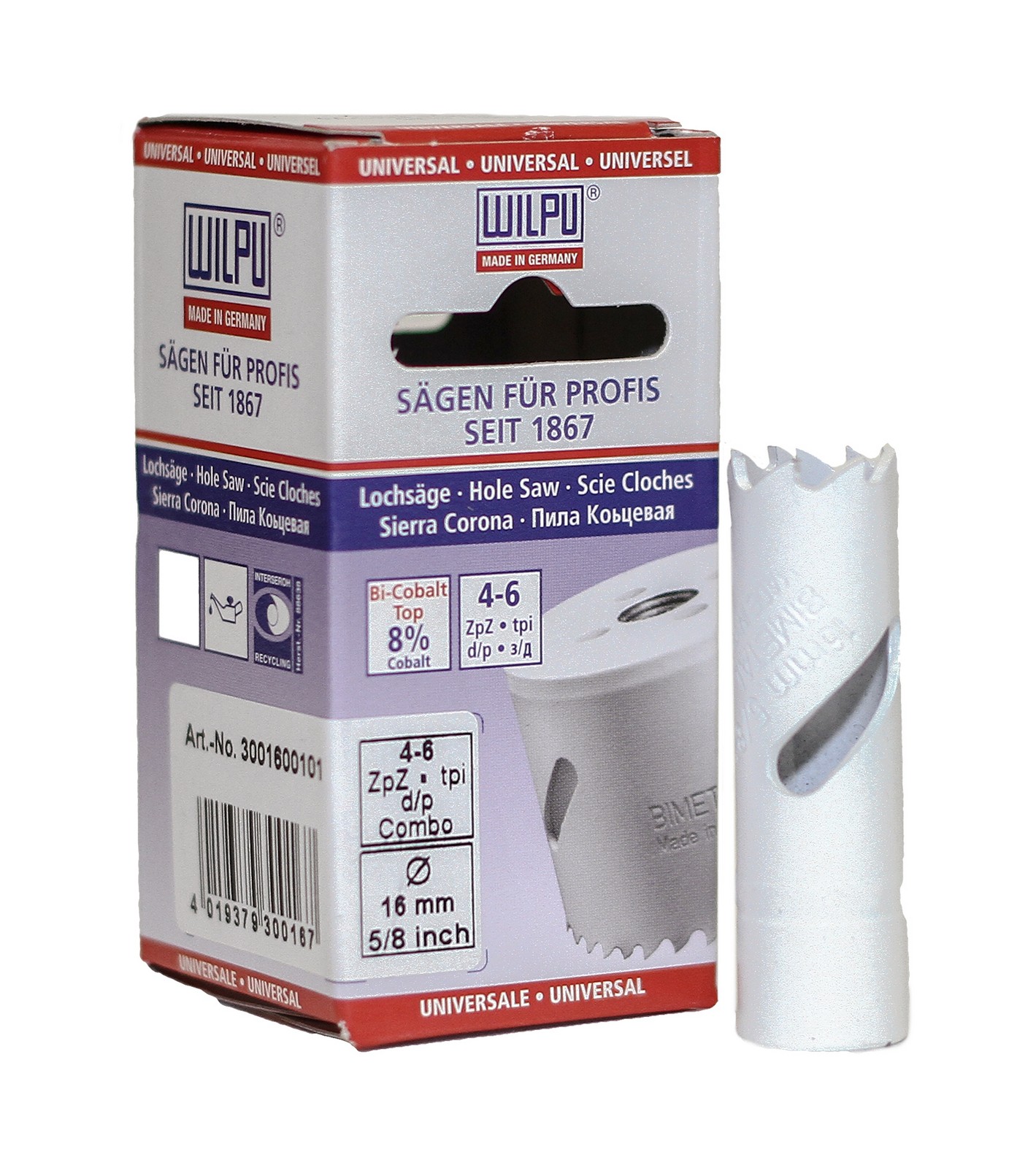 Коронка биметалл универсальная Wilpu Профи 16 мм крупный зуб