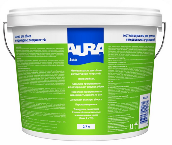 Покупали краску Аура Сатин для окрашивания флизелиновых обоев с мелким рисунком. Со своей задачей краска справилась. Буду покупать еще.