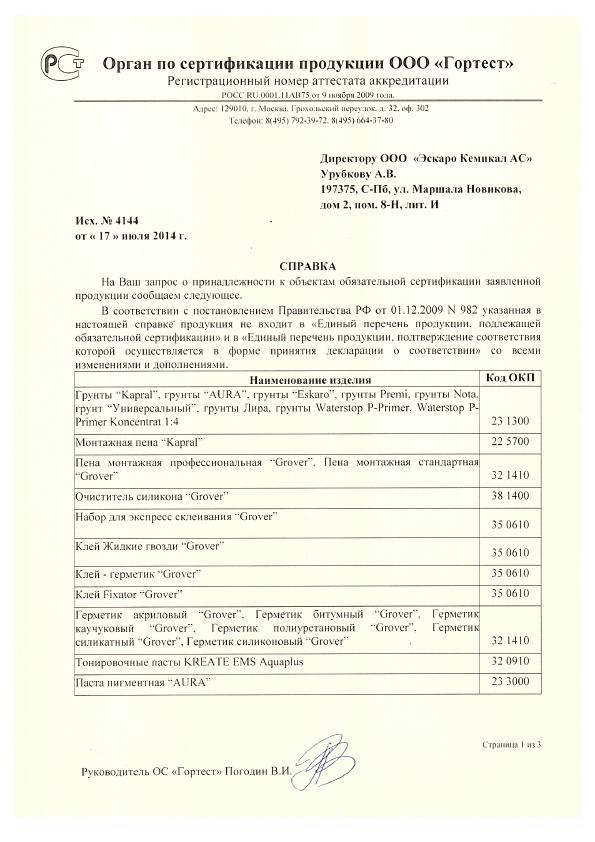 Экологичная, содержание ЛОС (летучие органические соединения) соответствует директиве Европейского Союза 2004/42/СЕ.