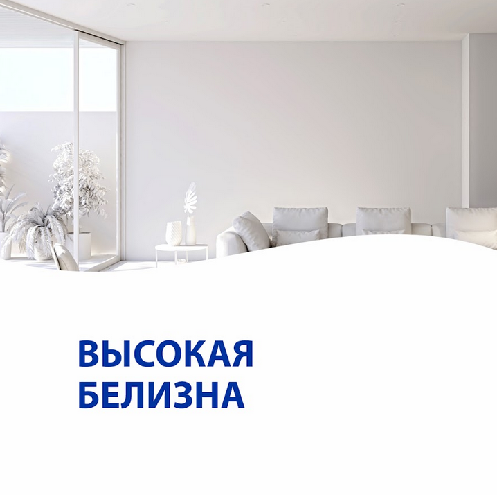 - Удобна в нанесении, легко раскатывается.После высыхания, образует равномерное покрытие, которое остается глубокоматовым при разном освещении, что позволяет визуально скрывать мелкие дефекты поверхности.