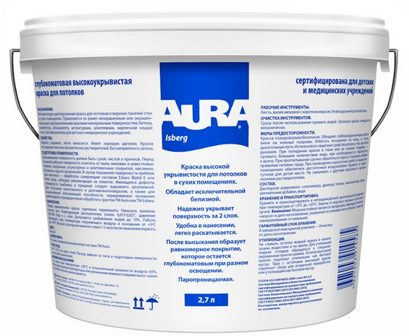 Краска для потолка Aura Interior Isberg белая 2,7л