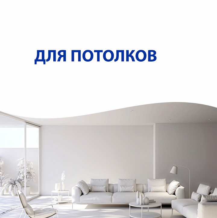 Глубокоматовая высокоукрывистая краска применяется для окраски потолков и верхних панелей стен в сухих помещениях. Для окраски новых или ранее оштукатуренных, окрашенных водно-дисперсионными красками, зашпатлёванных, оклеенных различными рулонными отделочными материалами поверхностей из бетона, газобетона, кирпича, асбоцемента, гипсокартонных плит, ДСП.
