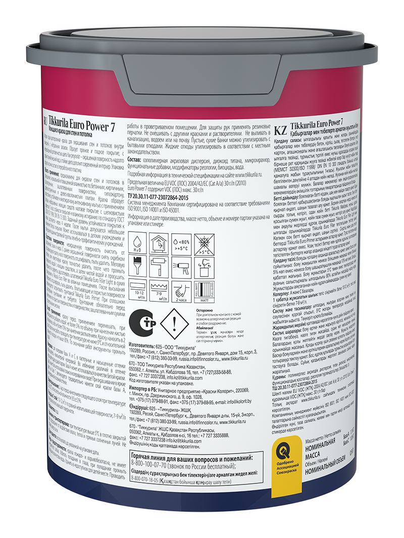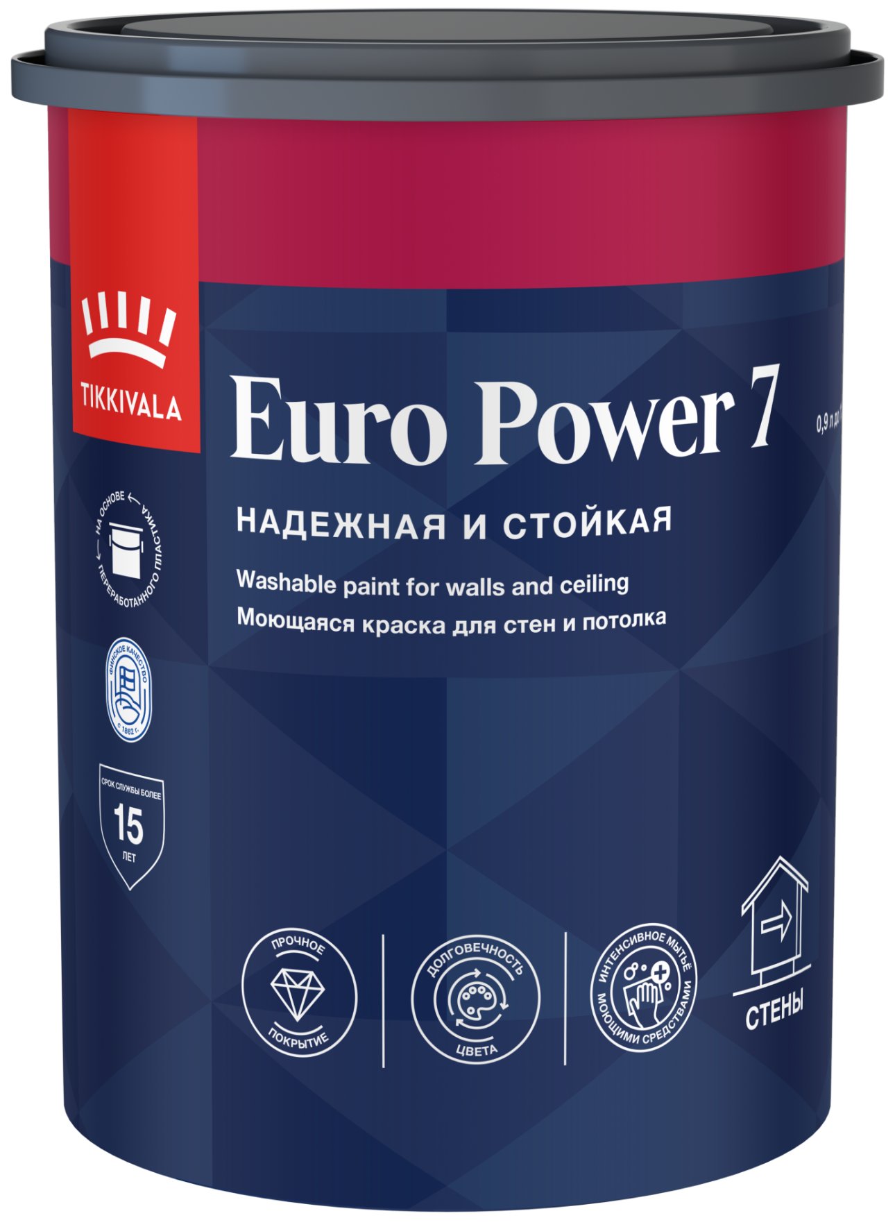 Водоразбавляемая латексная краска EURO POWER 7 для окраски стен и потолков в помещениях с нормальной и повышенной влажностью, относится к линейке Евро.