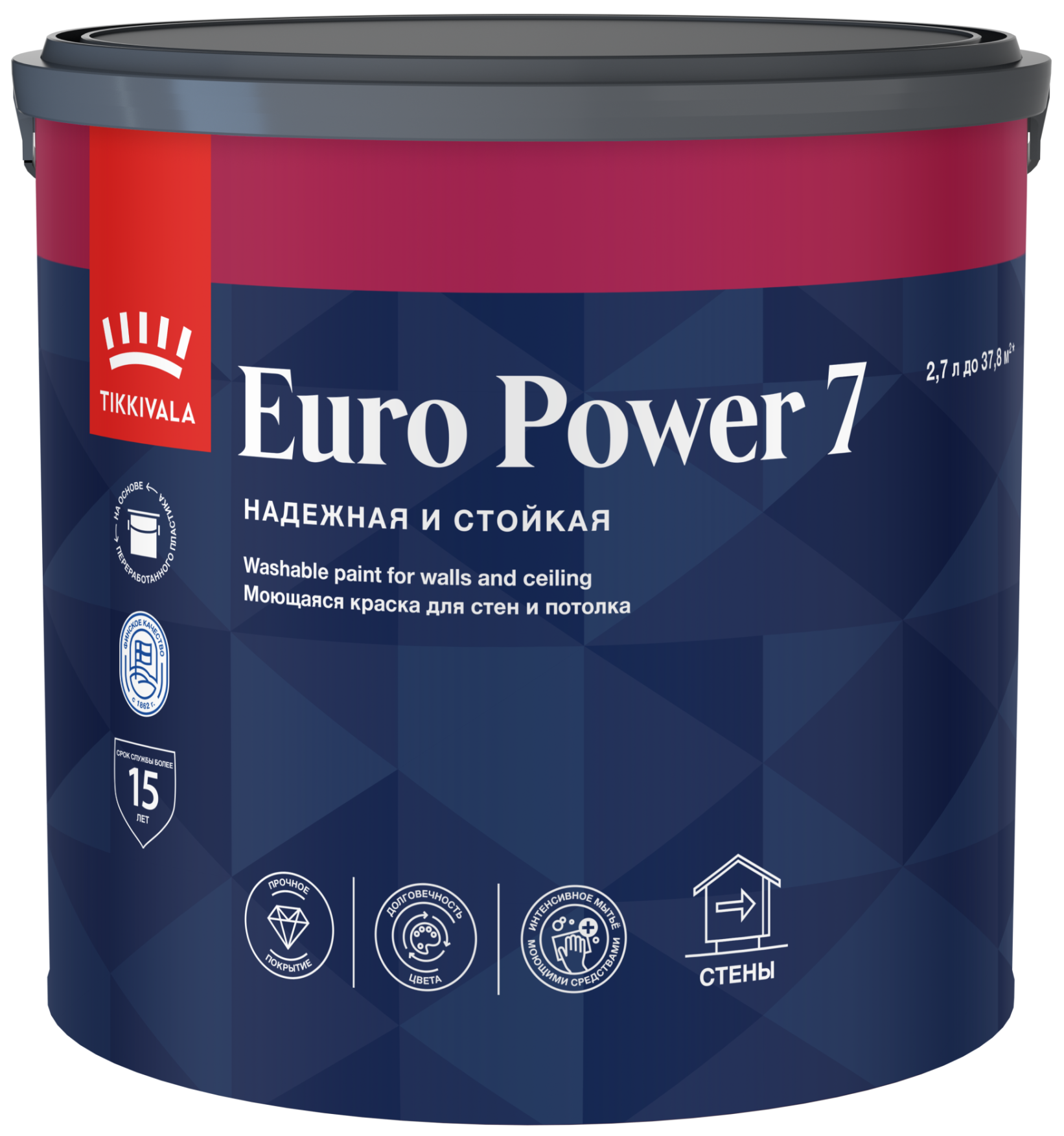 Водоразбавляемая латексная краска EURO POWER 7 для окраски стен и потолков в помещениях с нормальной и повышенной влажностью, относится к линейке Евро.