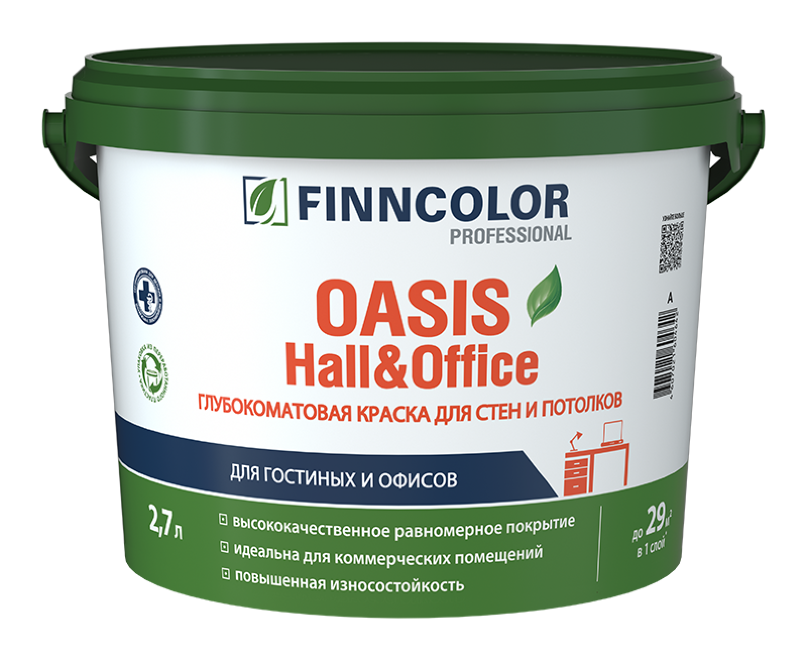 Краска моющаяся Finncolor Oasis Hall&Office база C бесцветная 2,7л