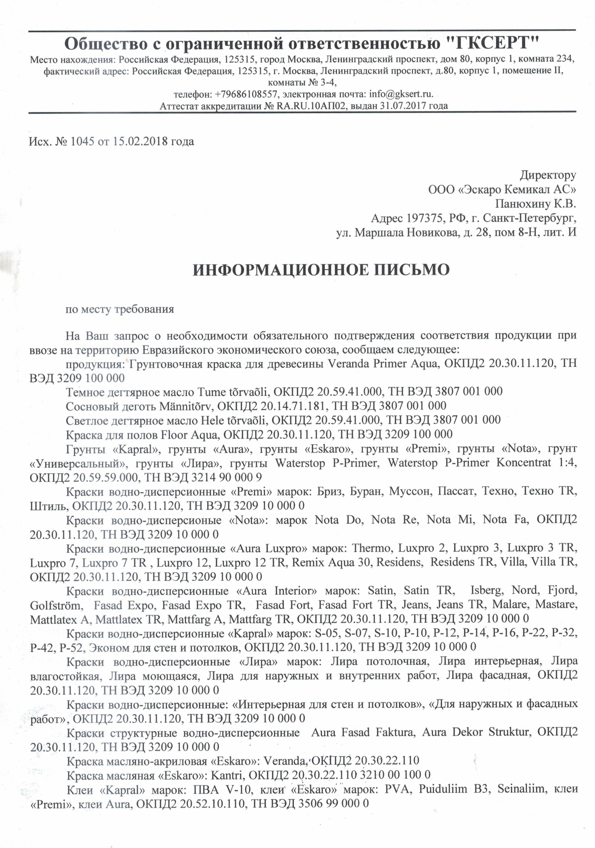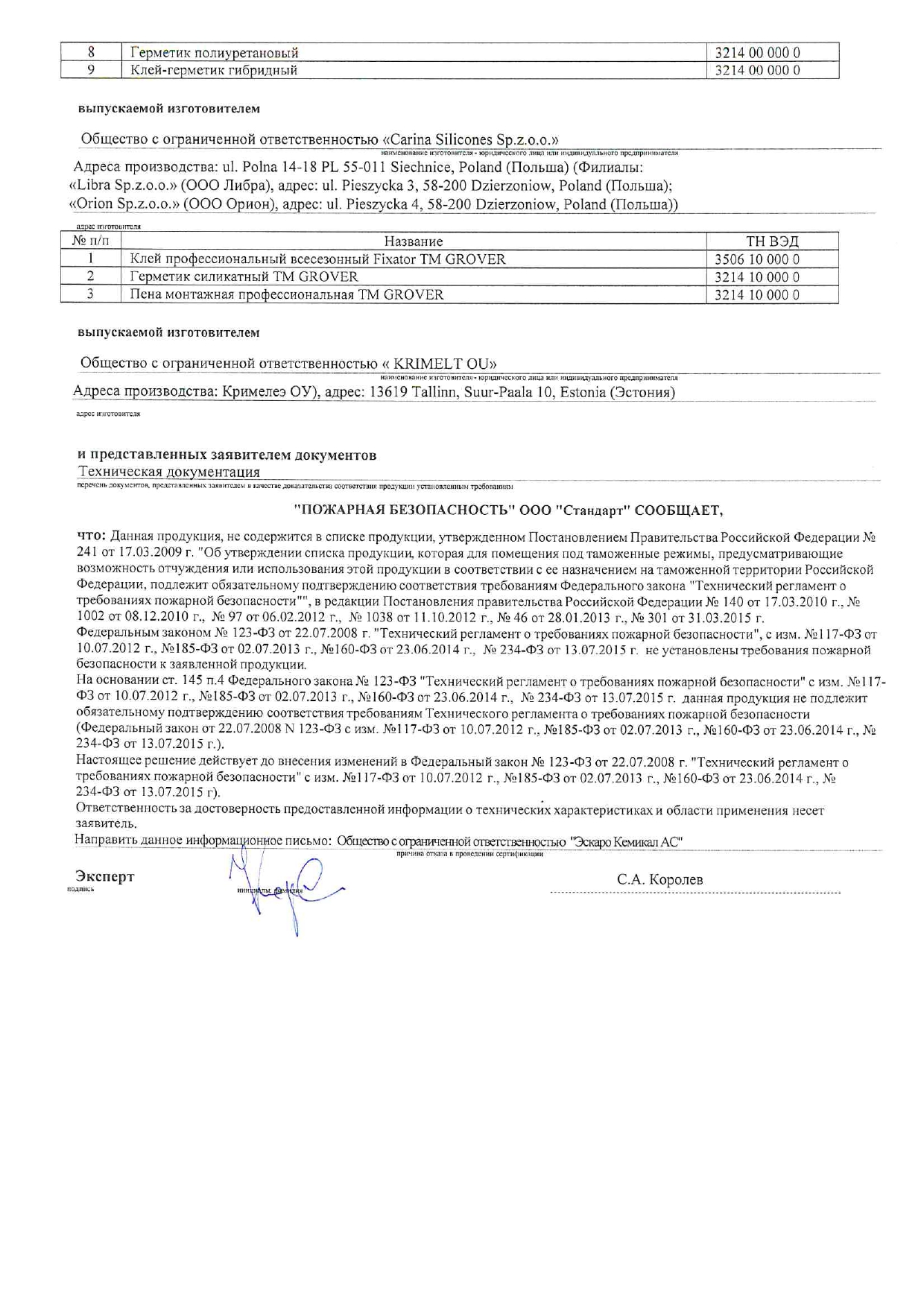 ООО Эскаро Кемикал АС, Россия.