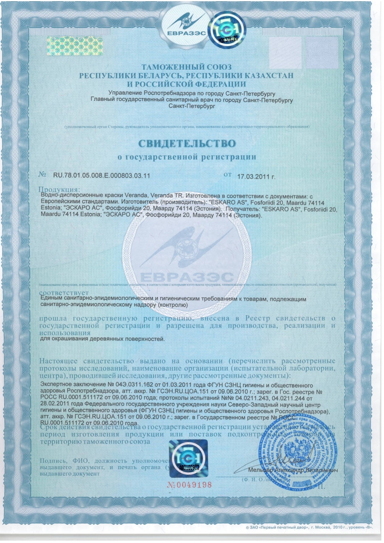 ООО Эскаро Кемикал АС, Россия.